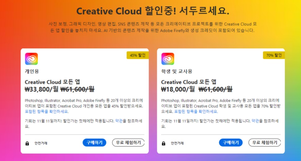 어도비 크리에이티브 클라우드 무료체험 하는 방법 주의사항