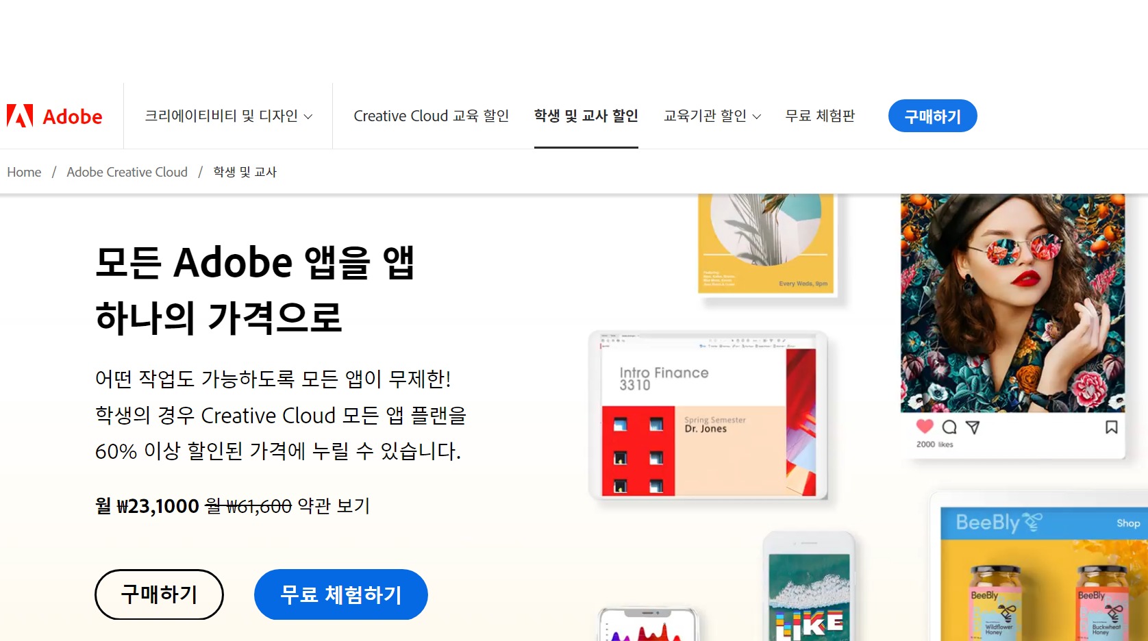 학생이나 교사용의 추가 할인이 진행되면 약 5,000원 정도씩 매월 절감이 되지만 , 일반 성인으로 creative 가입시 정상가격은 사실 조금 부담스러운 가격이긴 합니다. 그래서 할인할 때를 잘 놓치지 말아야 할텐데요. 그래도 어도비 크리에티브 클라우드를 설치하게 되면 , 20가지 이상의 다양한 디자인 프로그램등을 자유롭게 사용이 가능하게 됩니다.