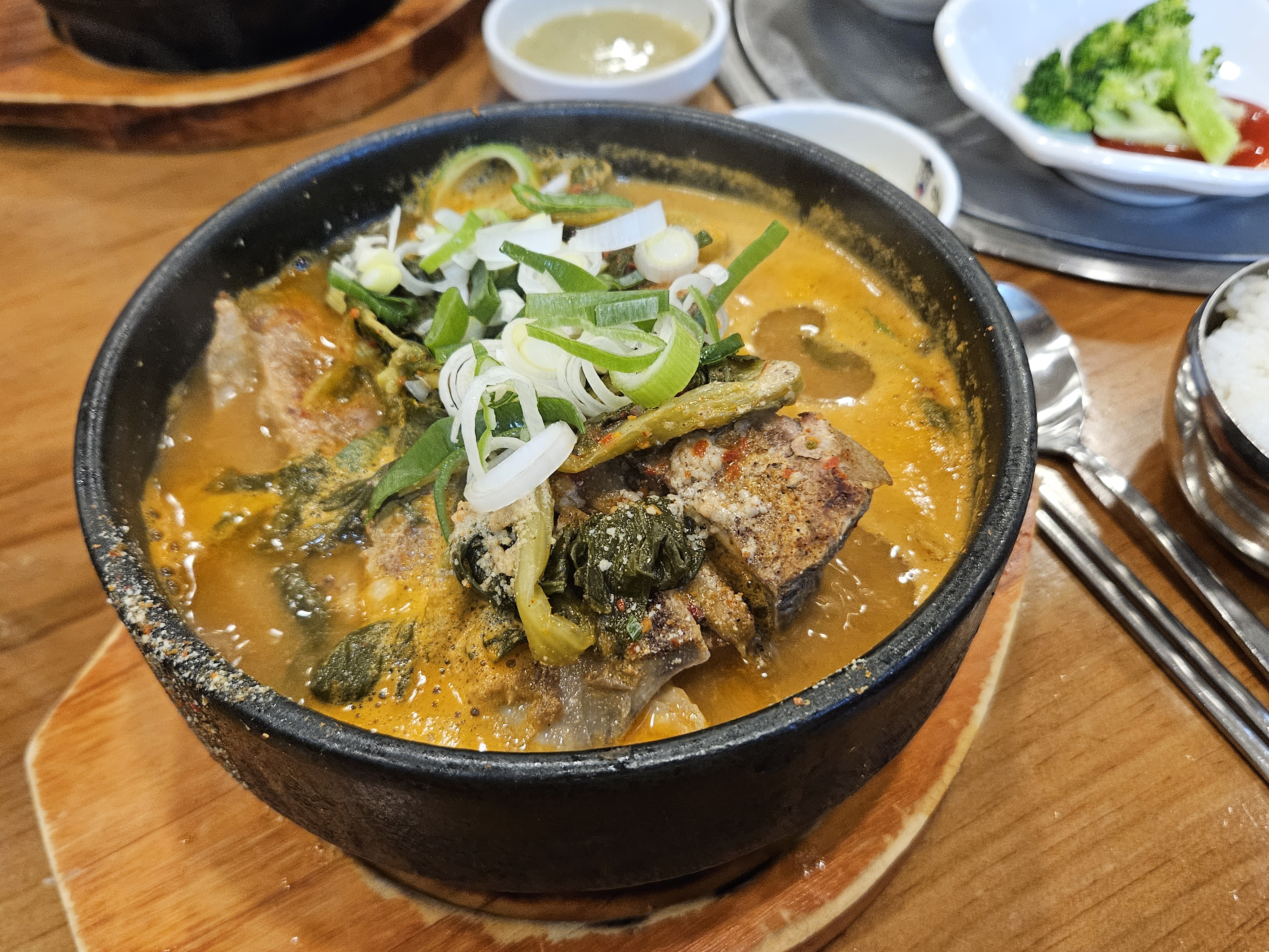 보통 반찬이 없거나 , 조금 부실한 감자탕집이 많은데 , 가면 늘 똑같진 않지만 밑반찬 2개와 김치 두종류씩은 항상 주시더라구요. 뼈해장국도 너무 자극적이거나 잡내가 많이나지 않고 정말 맛있었어요. 또 돈가스 메뉴가 있어서 매운 것을 못 먹는 아이들과 함께 즐기기에도 좋은 식당이었구요.
