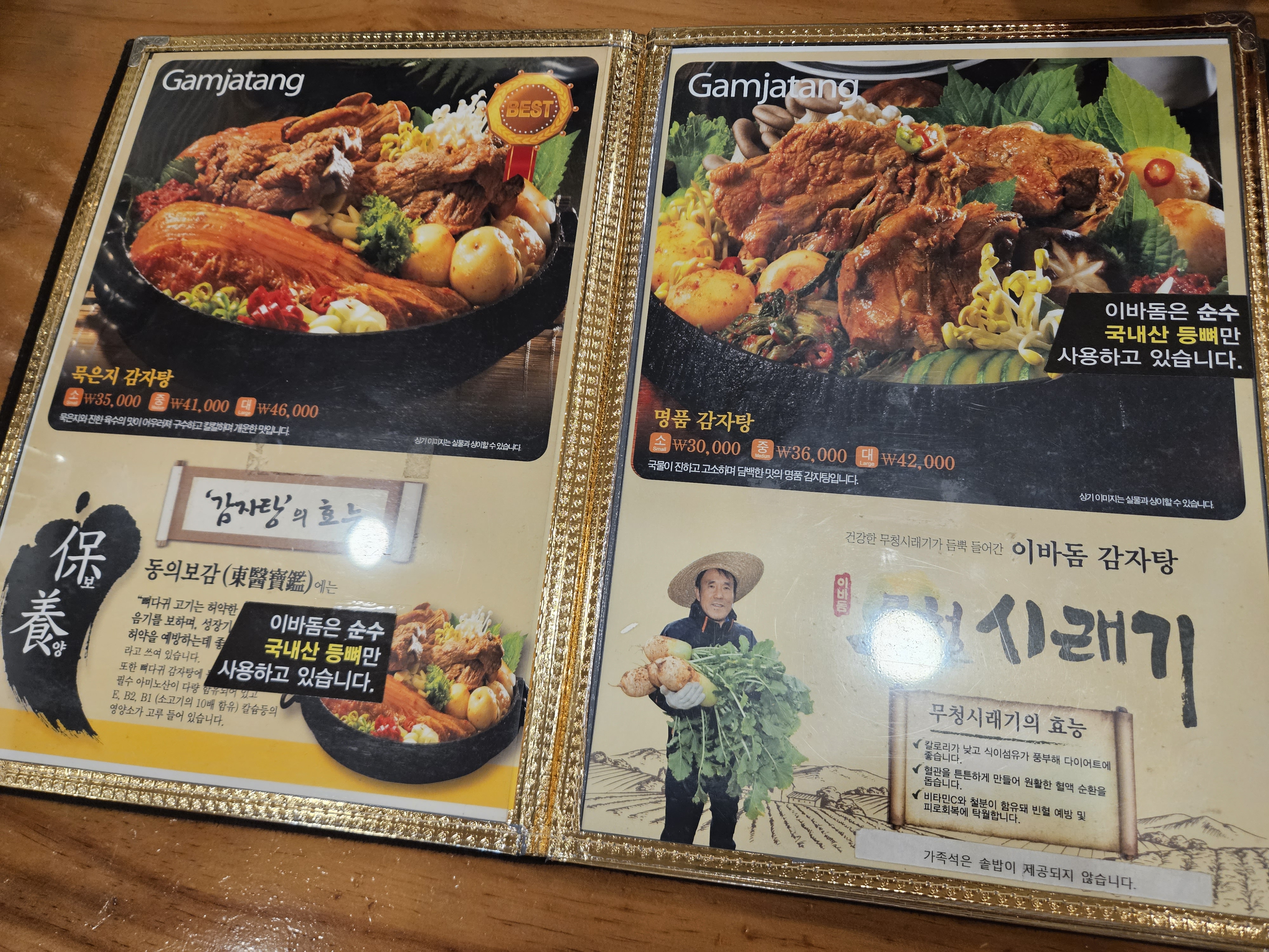 이바돔 감자탕 메뉴판 가격 운영정보