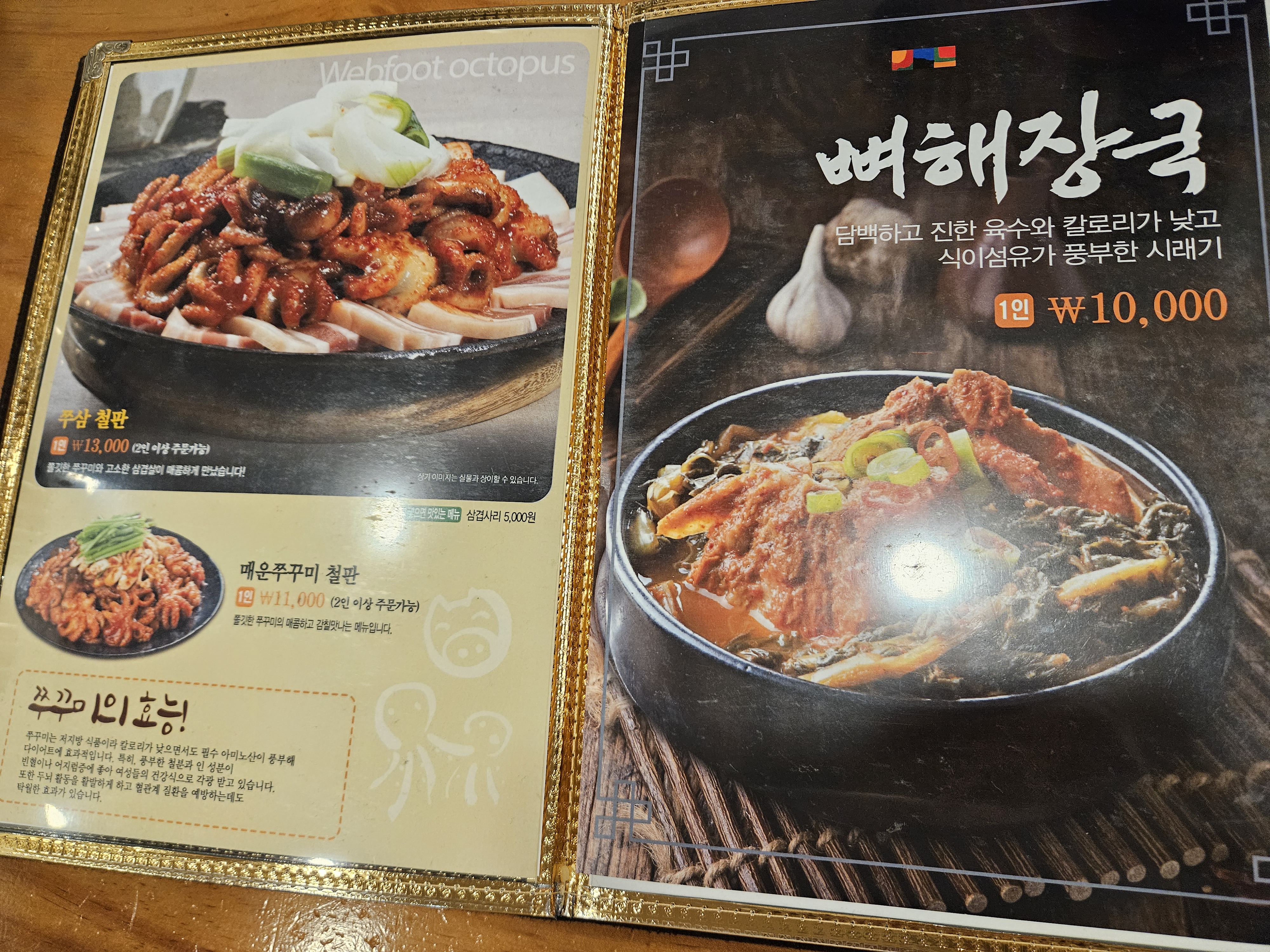 쭈삼철판 13,000원 (1인) , 뼈해장국 1인 10,000원 돈가스 9,000원 날치알주먹밥 5,000원 함박스테이크 9,000원