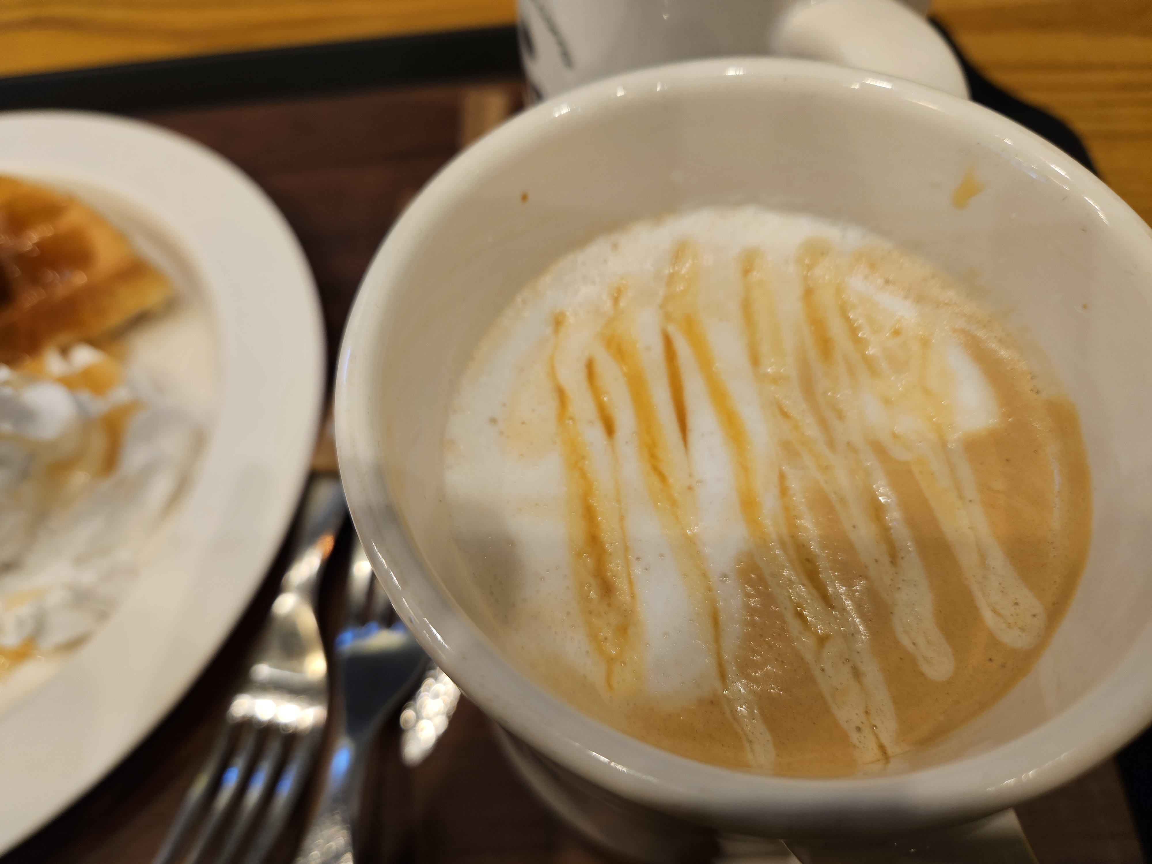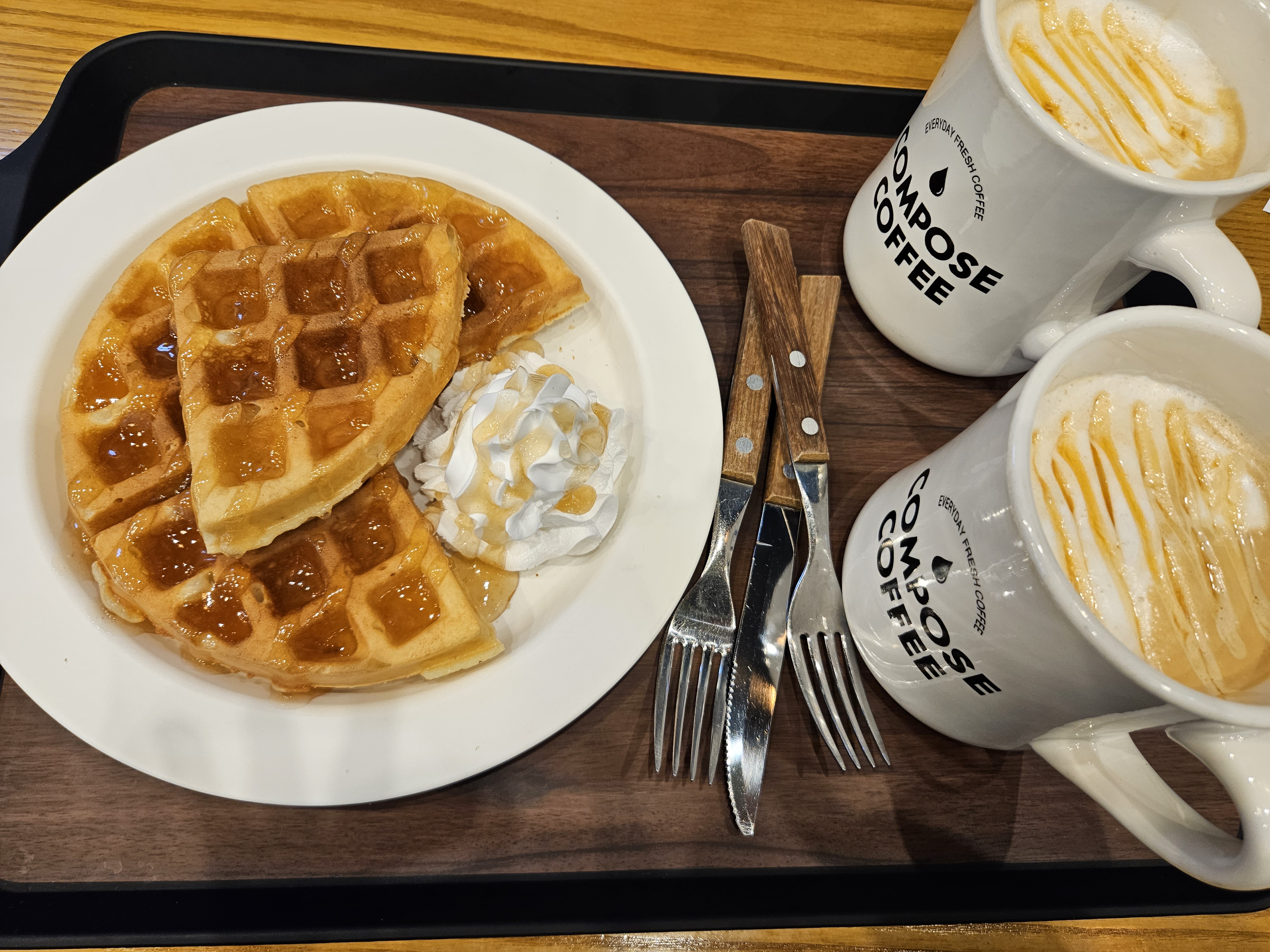 달콤한 만큼 따뜻한 라떼와 달콤한 와플 먹으면
