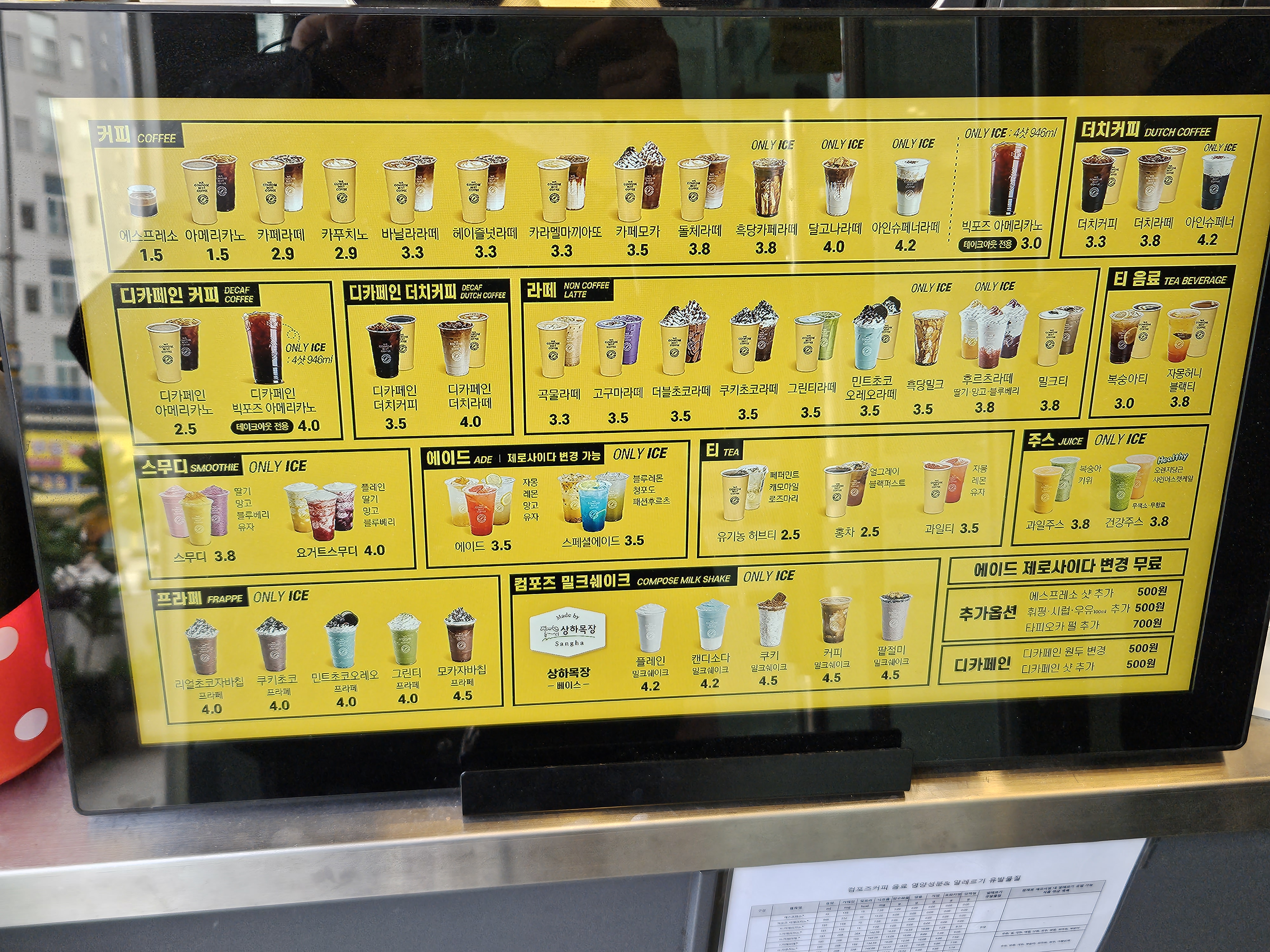 컴포즈는 전국에서 유명한 커피 체인점이다보니 , 사람들이 많이 모이는 곳에선 컴포즈 카페도 많이 보이더라구요.
