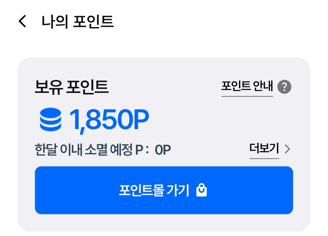 위에는 같은 날 적립 된 150p이다. 이렇게 매일 적지만 꾸준히 쌓이면 교환 기프티콘으로 바꿀 수 있다.