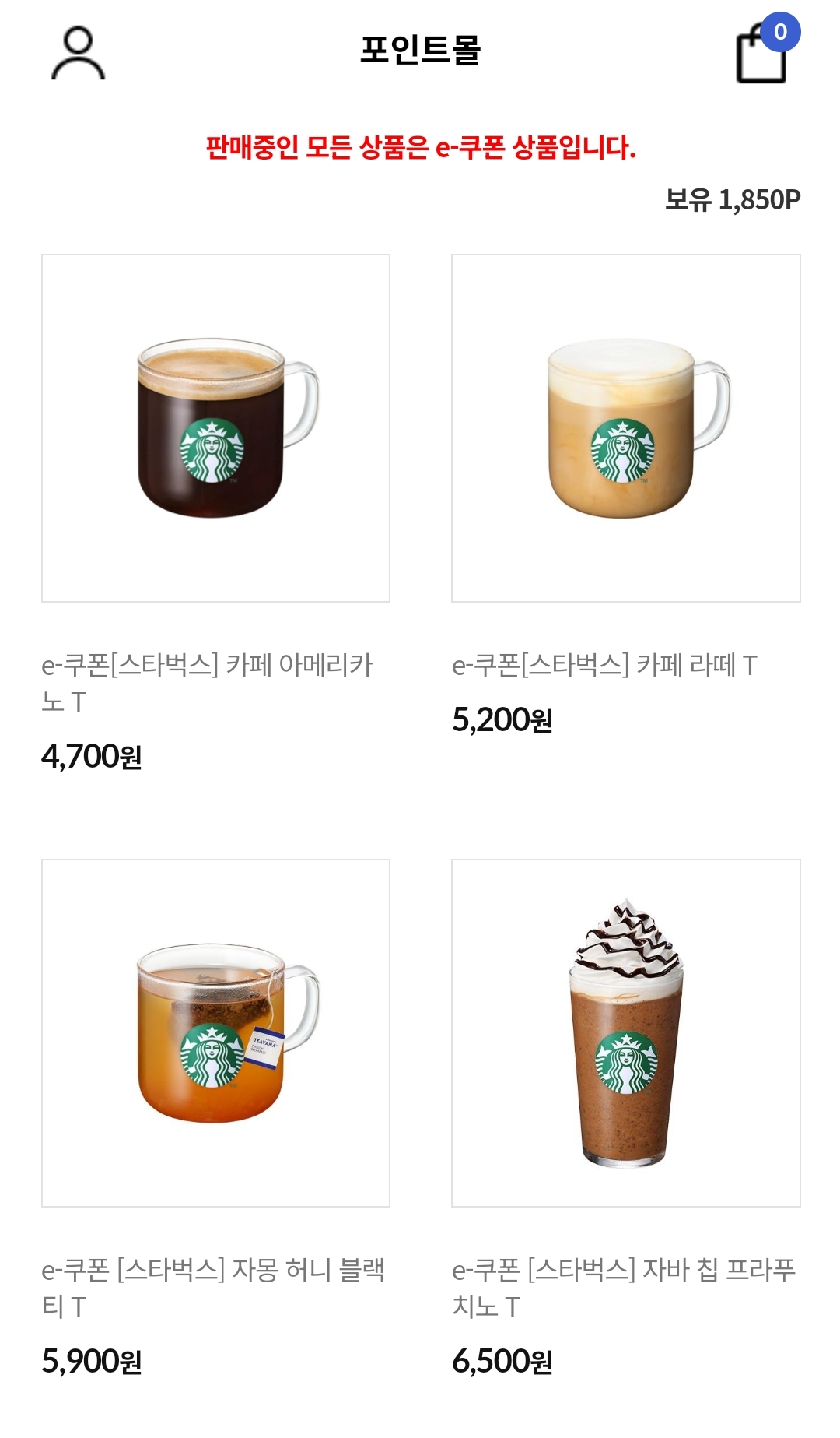 나도 포인트 적립 된 것으로 포인트 몰 가서 커피를 주문해 봤는데 사용법이 어렵지는 않았다.